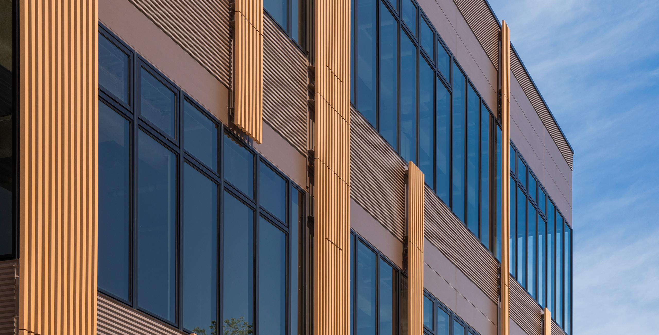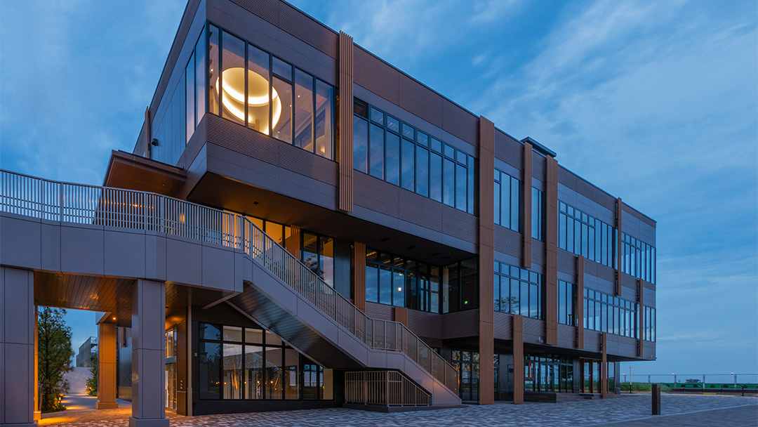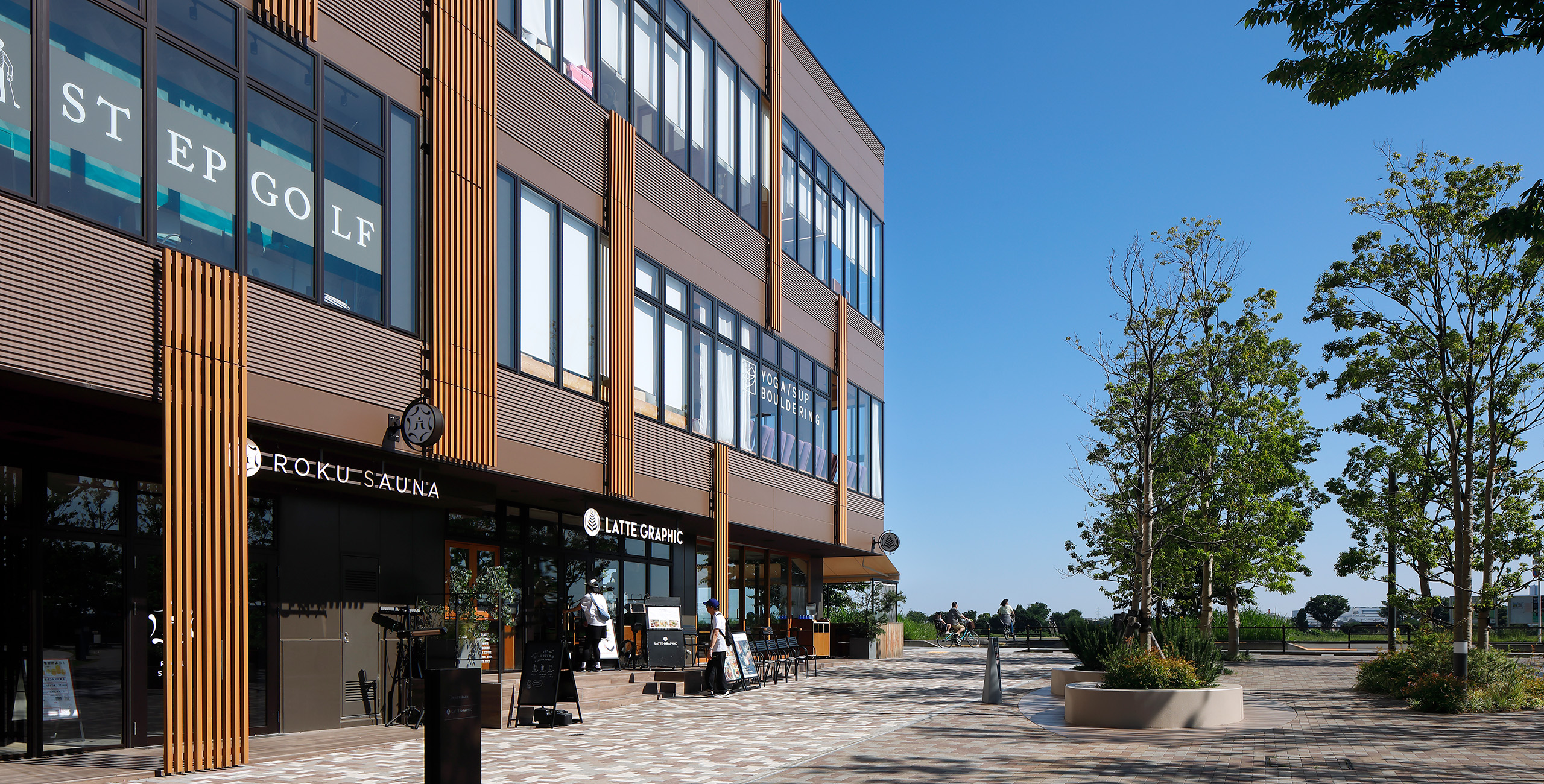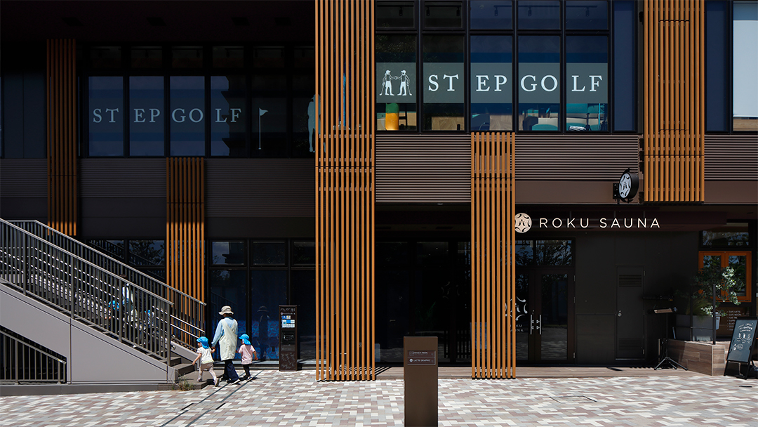 先行街区等の周囲の木々と調和するよう、木立を意味する「GROVE」を建物デザインコンセプトとし、細やかなスケール感を持つファサードとした。ガラス開口部が多いファサードには縦方向のルーバーを木立のように見立てて設け、商業施設としての楽しさをルーバーのランダム配置によるリズム感で表現している。