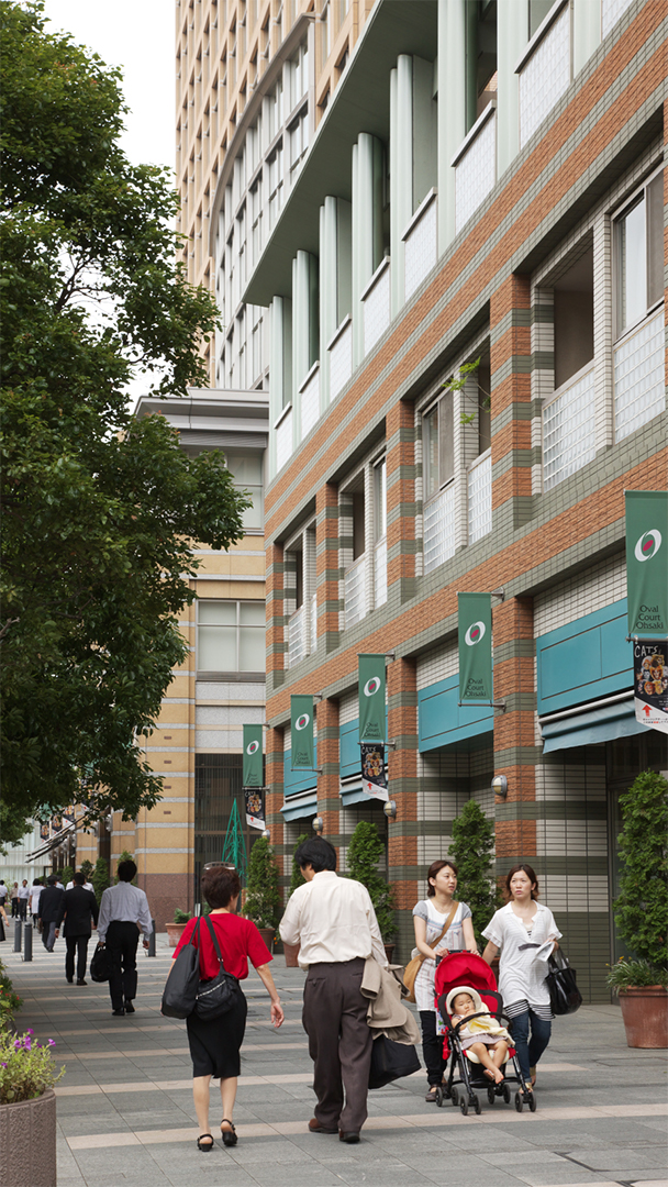 JR五反田駅から目黒川に沿って南東に広がる大崎・五反田29ha地区。かつて古い工場等が立ち並んでいたこの地区は2000年代以降、段階的に行われている開発によって新しい”まち”へと生まれ変わりつつある。この再開発において光井純&アソシエーツ建築設計事務所は、街区全体のマスタープランを策定すると共に、「オーバルコート大崎」(2001年)を皮切りにして、「オーバルコート大崎マークウエスト」、「オーバルコート大崎マークイースト」、「オーバルコート大崎マークイーストⅡ」、「オーバルコート大崎サウスタワー」、「オーバルコート大崎ビュープラザ」が完成し、続く「東京サザンガーデン パークタワーグランスカイ」(2010年)、のデザインに関わっている。その後も「パークシティ大崎 パークシティ大崎 ザ タワー」「パークシティ大崎 ザ レジデンス」「大崎ブライトプラザSumビル」、「北品川地域交流施設」、「小関橋公園」「大崎ブライトタワー」(*低層部外装、ランドスケープ)、「大崎ブライトコア」(*低層部外装、ランドスケープ)(2015年)といった、それぞれに個性をもち、新たな”まち”の基点となるプロジェクトのデザインを多数手掛けている。